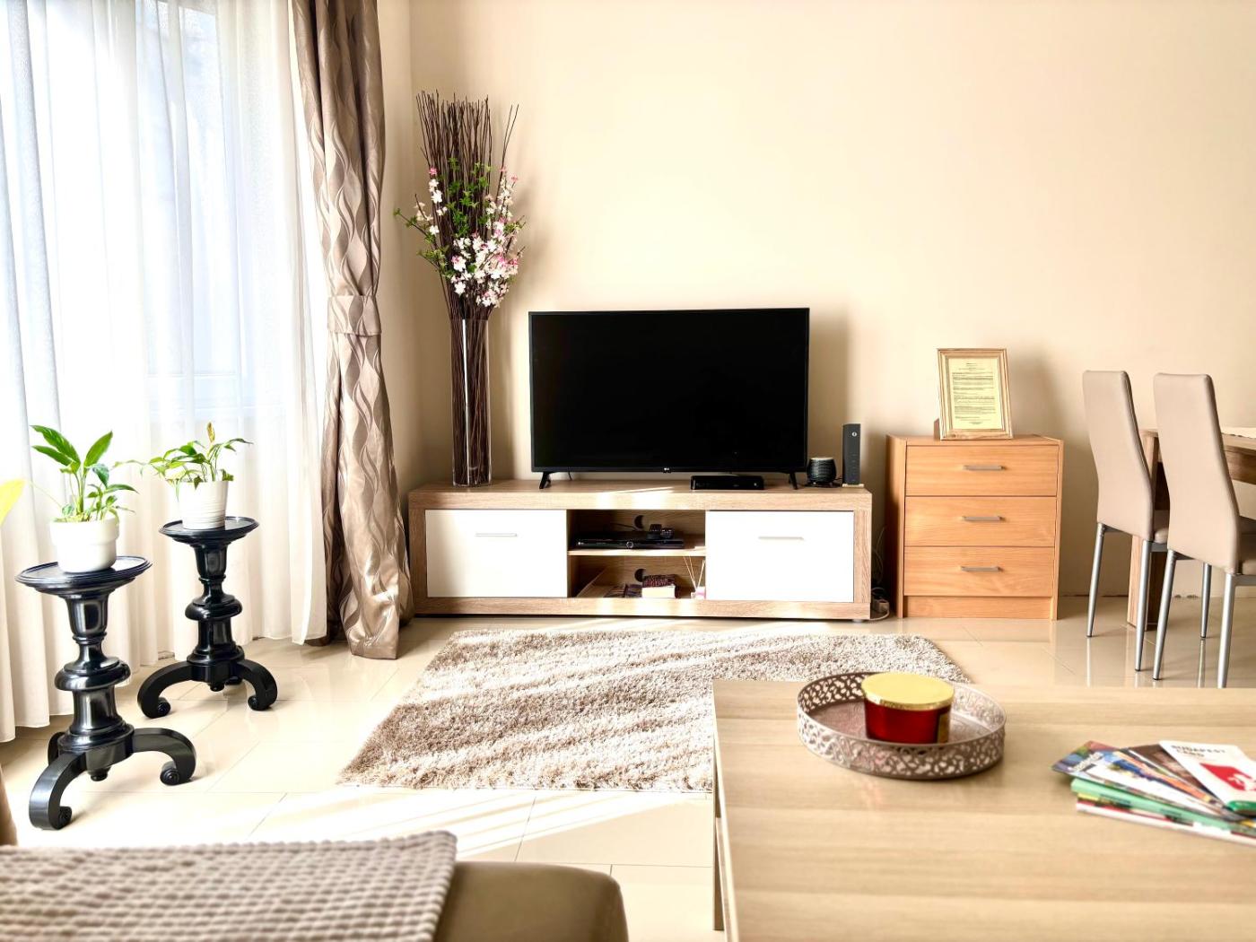 Deluxe Apartment. This apartments special feature is the fireplace. This spacious apartment includes 1 living room, 2 separate bedrooms and 1 bathroom with a bath and free toiletries. The fully equipped kitchen features a stovetop, a refrigerator, a dishwasher and kitchenware. This apartment has air conditioning, flat-screen TV with streaming services, garden views, as well as winechampagne for guests. The unit has 3 beds.