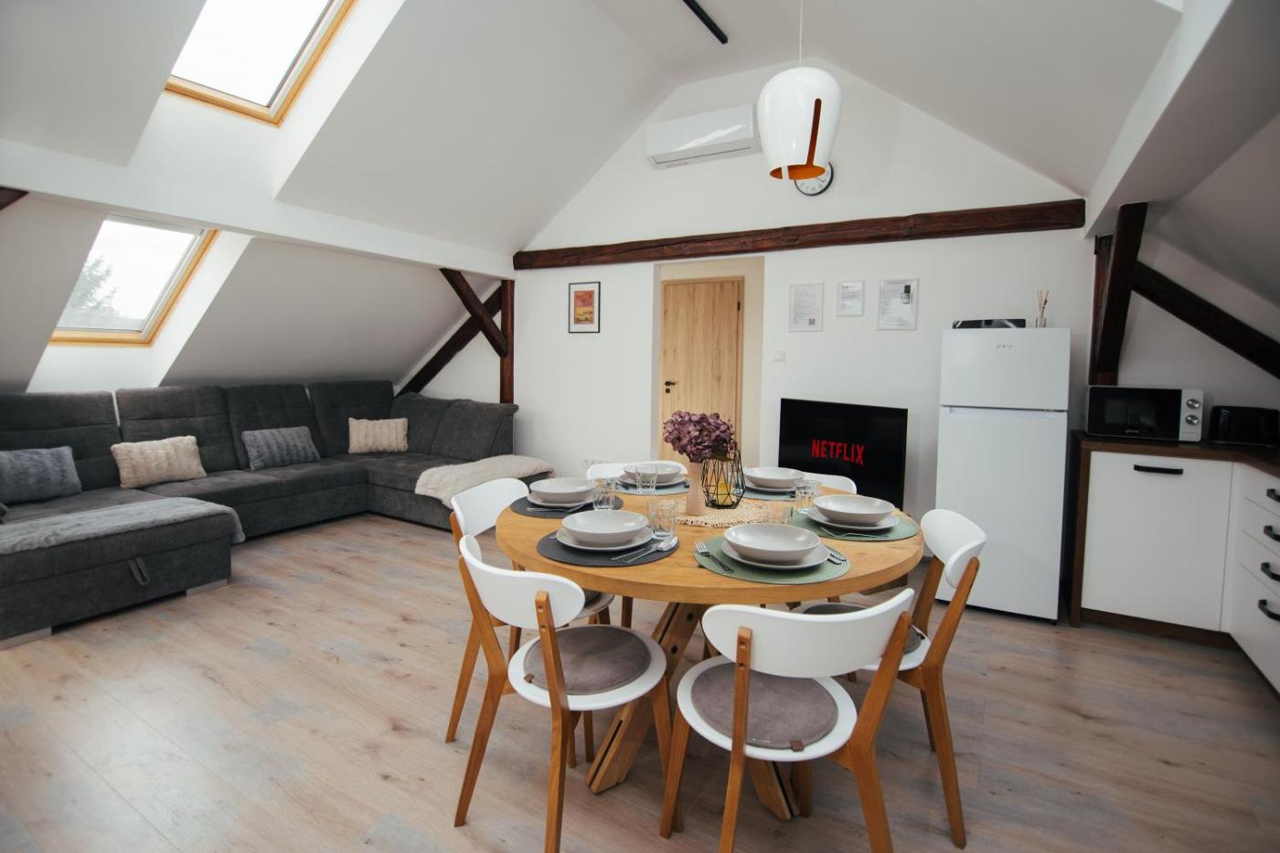 Two-Bedroom Apartment. The air-conditioned apartment features 1 bedroom, 1 bathroom and a kitchen. The apartments kitchen is available for cooking and storing food. This apartment provides heating and a flat-screen TV. The unit offers 1 bed.