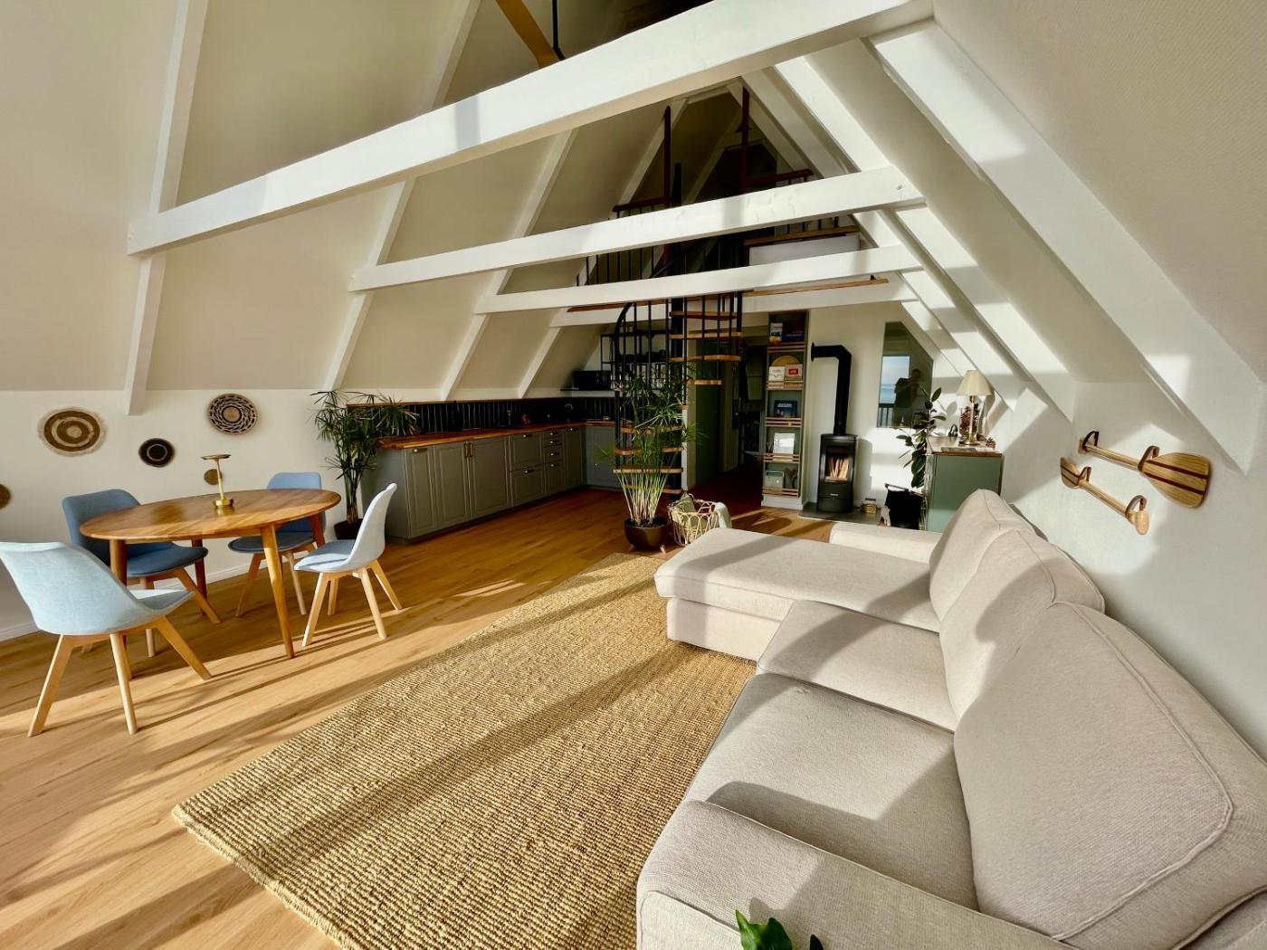 The holiday home features a terrace, 2 bedrooms, a living room and a well-equipped kitchen with a dishwasher and a microwave. Towels and bed linen are provided in the holiday home. The property has an outdoor dining area.